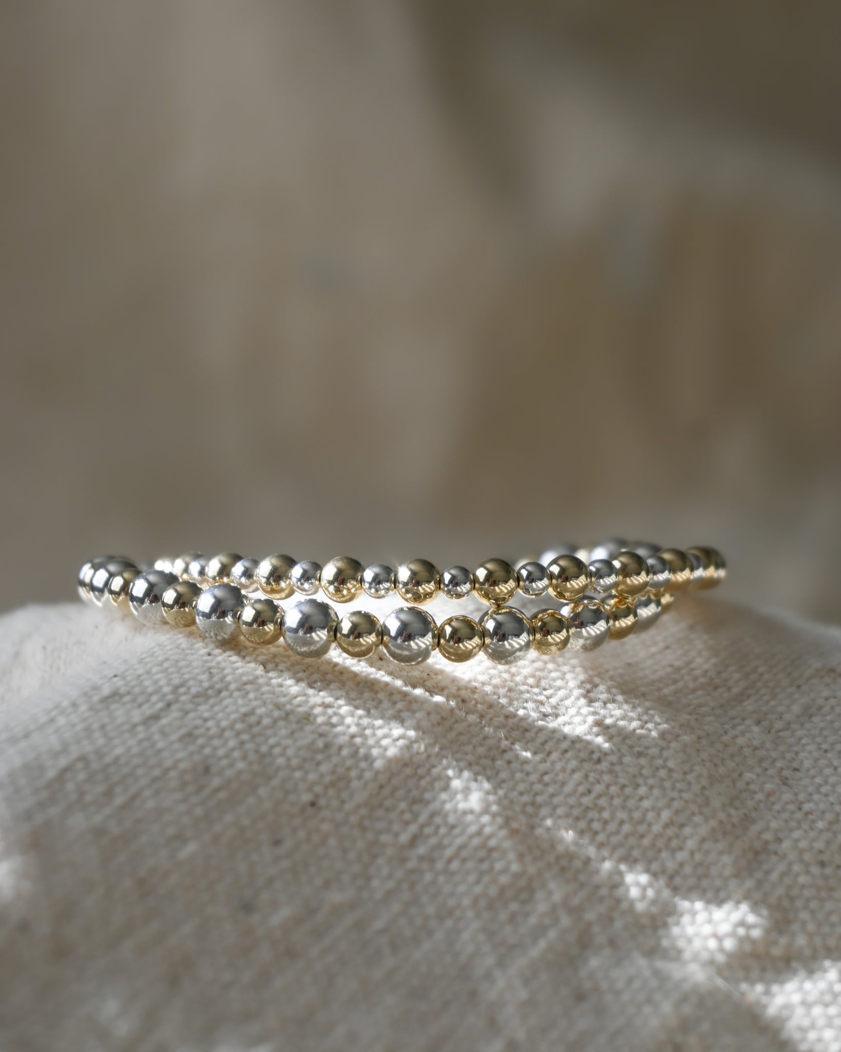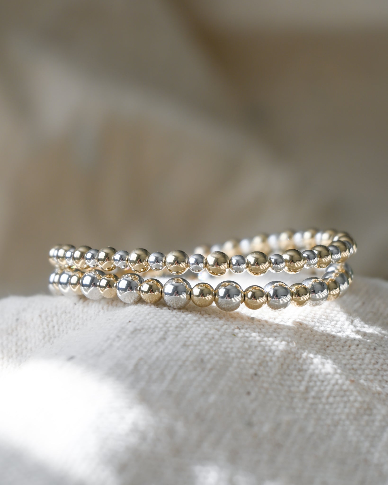 3/4mm & 4/5mm alternating sterling silver and gold filled bracelets sold as a set.
